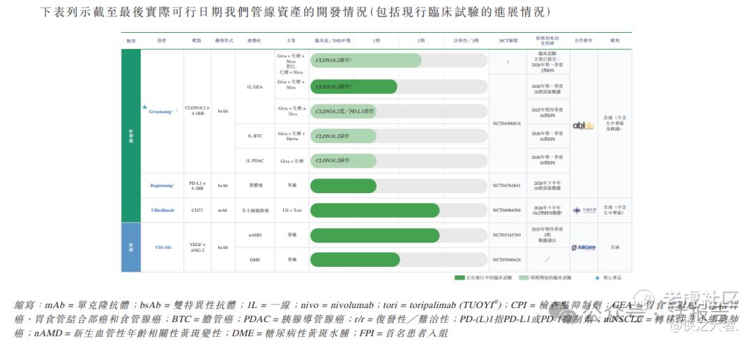 目前已完成I期临床部分研究,2026年初将启动随机II期研究,且FDA对其II期联合治疗试验无反对意见。此外,公司还拥有uliledlimab、ragistomig等三个临床阶段项目管线。