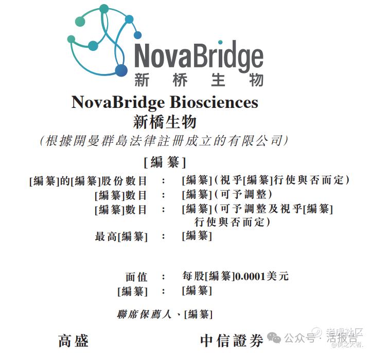 **获悉,新桥生物NovaBridge Biosciences(简称“新桥生物”)于2025年10月30日首次在港交所递交上市申请,拟在香港主板上市。