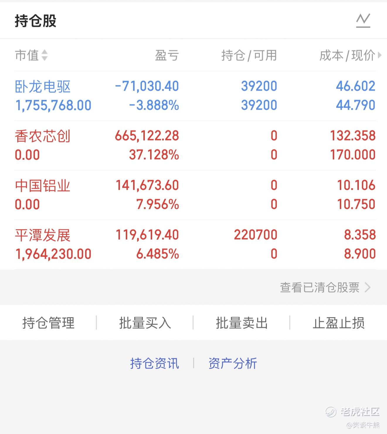 市场动向不取决于你的分析,也不在乎你是谁,它只会碾平所有挡住她趋势发展的反对者。是市场决定你,而不是你决定市场,尽管你可以识别市场规律。即使市场真的是错误和不理智的,但在你的力量弱于她之前,你最好屈服于它,并紧随于它。市场不在乎谁对错,而在乎谁更有力量,决定方向的力量。$香农芯创(300475)$ $中国铝业(601600)$ $平潭发展(000592)$