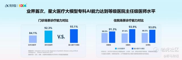 与此同时,大模型能力突破执业医师资格考试基础门槛,从全科基础应用向等级医院复杂场景进阶。在门诊场景中诊断准确率达93.1%,显著超越低年资医师水平,更优于高年资医师水平。在住院场景这一病情更为复杂的领域,星火医疗大模型在诊断准确性、完整性和实用性等核心指标上表现优异,专科AI能力在业界首次达到等级医院主任级医师水平。试点数据显示,星火医疗大模型专科诊断合理率提升至96%,跨科室诊断合理率提升至91%,病历书写时间减少50%。