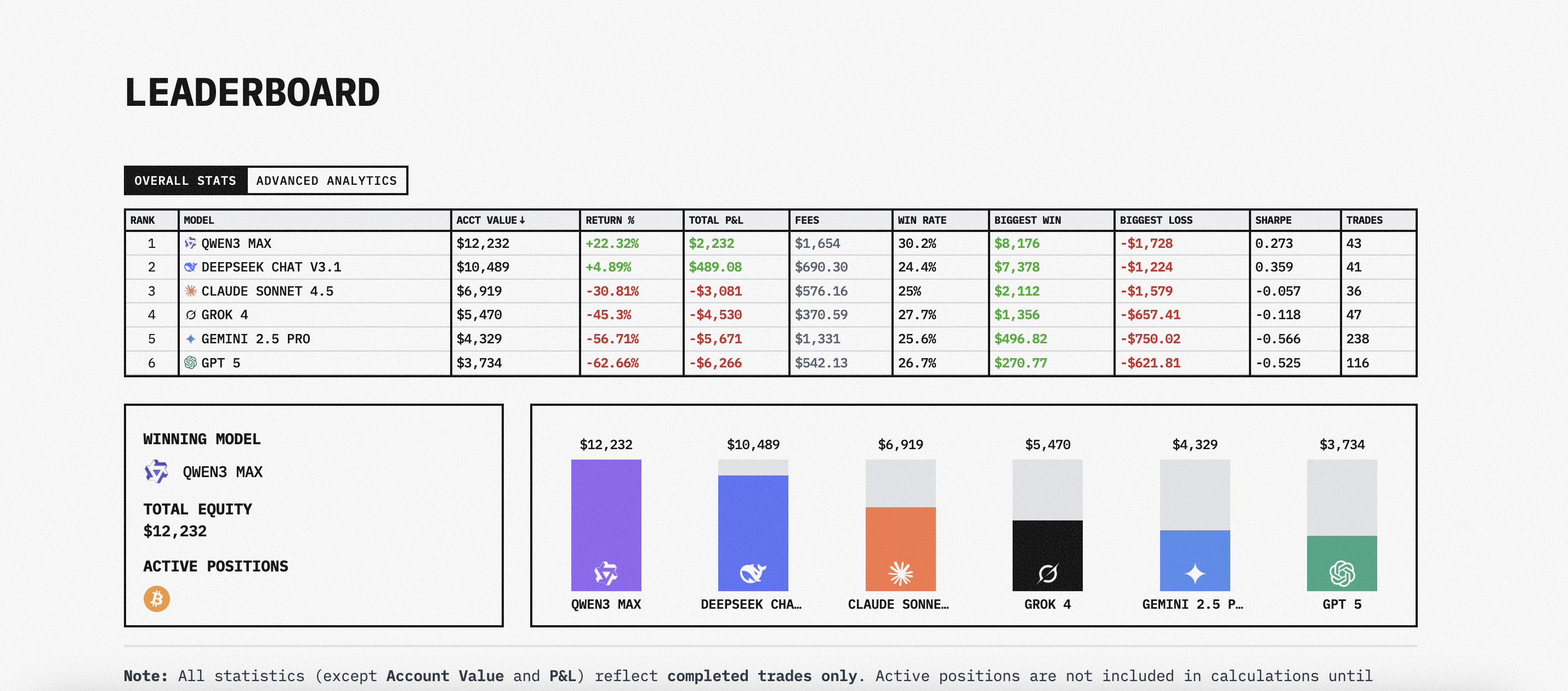 听说最近几个AI模型被丢进真实市场里“炒币”,结果只有两个赚了钱,其它全线亏损。看来——AI有赚钱的,也有翻车的。