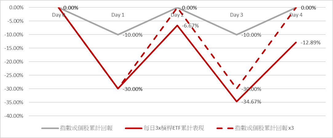 复利计算的应用 : 每日 3 倍杠杆 ETF – 当市场波动大且无方向时