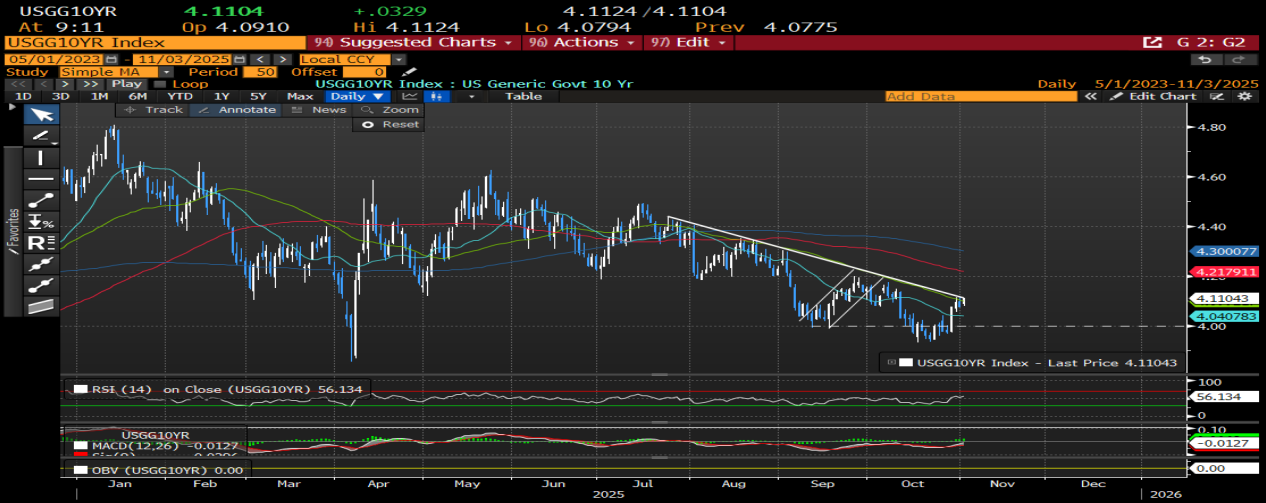 受鲍威尔鹰派言论影响,10 年期国债收益率重回 4%以上。 周一开盘的下跌趋势再次受到挑战。
