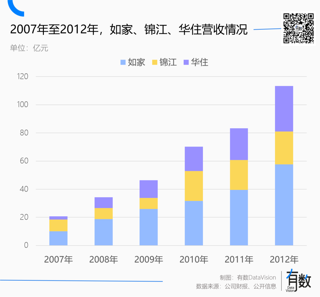 连锁酒店在全球范围内都是一个比较新的行业,2005-2009五年间,是国内经济型酒店增长的黄金周期。经济型酒店门店与房间规模的复合增速双双超过60%[4]。期间,如家整体营收从2.7亿增长至26亿,净利润规模翻了11倍[5]。