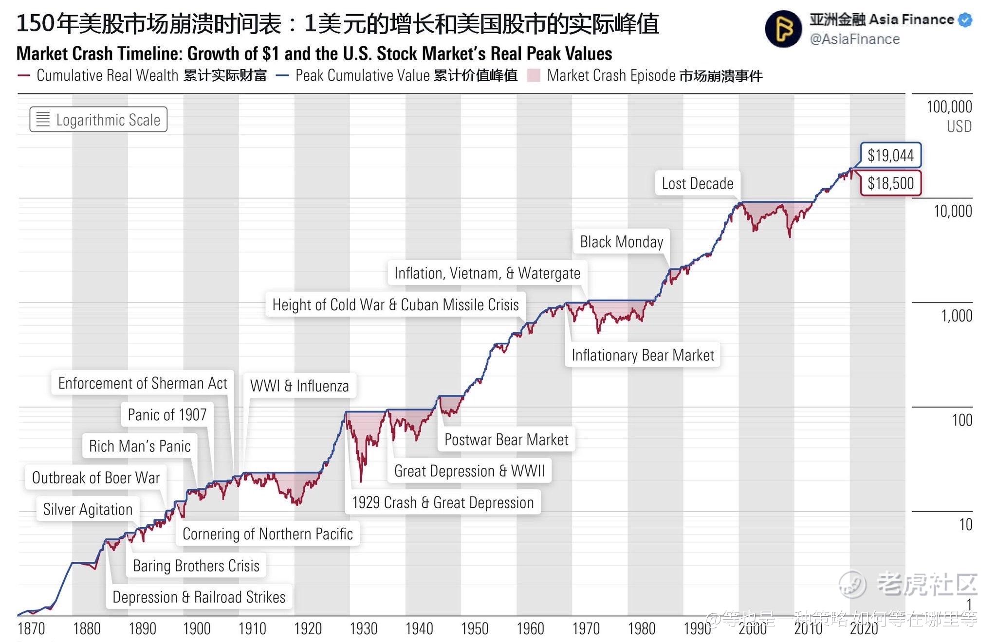 美股150年市场崩溃时间表:1美元的增长和美国股市的实际峰值:短期事件不会影响长期投资。多次提醒,“世界上任何养老或储蓄保险,都不如定投美股。过去100年,标普500年的平均回报率10.5%;过去20年,纳斯达克100的年化回报率14.9%”。美股任何一次深度回调,都是加仓指数ETF的时机。如果分析投资大佬的业绩,包括达利欧、索罗斯在内,绝大多数你知道的投资人,跑不赢大盘的。除日内量化交易不能披露,所谓美股操作指南,关键是交易纪律。大盘回调时,散户投资者最省心的替代方案:使用QQQ、TQQQ和QQQI策略组合。