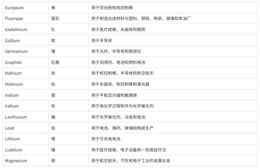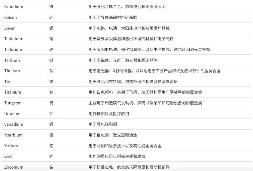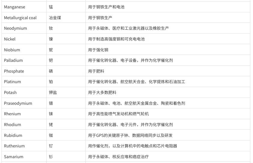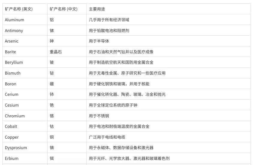 2025年美国关键矿产清单