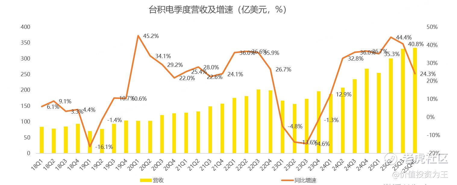 展望2026年,分析师预期台积电营收增速在22%左右,从目前AI趋势来看,台积电明年业绩增长是大概率事件。
