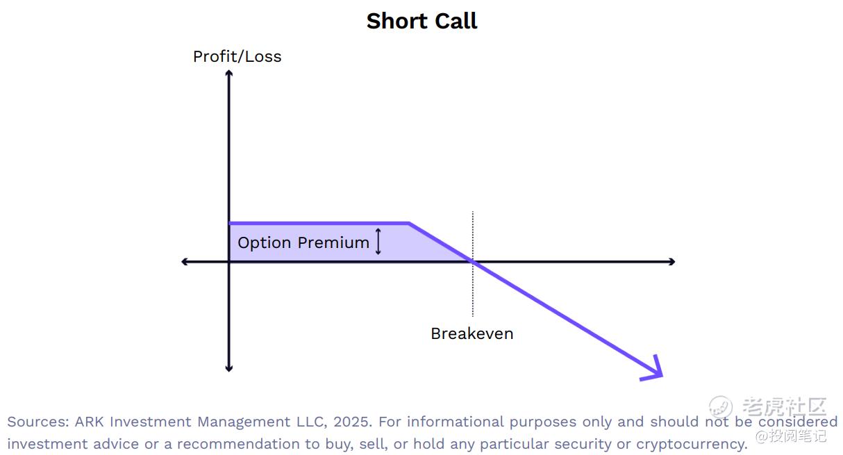 卖出看涨期权(简单理解就是看跌)的头寸在标的资产价格低于行权价时获利,价格高于行权价时则亏损。虽然前期收取的期权费是最大收益,但理论上潜在亏损无上限,因此作为独立策略风险较高。该策略常与其他头寸组合使用以产生收益或资本增值。