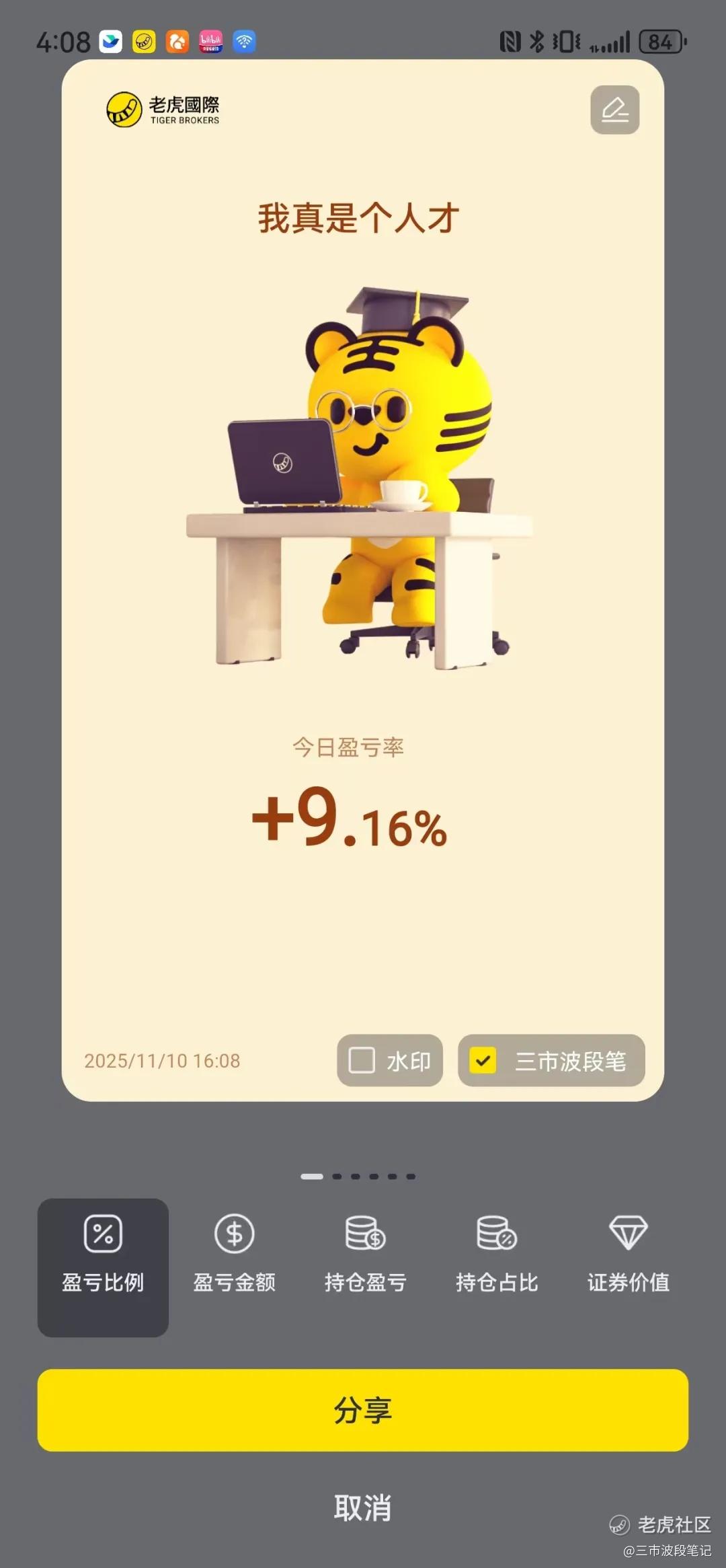 截至到盘前,目前杠杆率是1.35。盘前收益如下(今天可能会打破我今年单日最高账户收益率纪录):