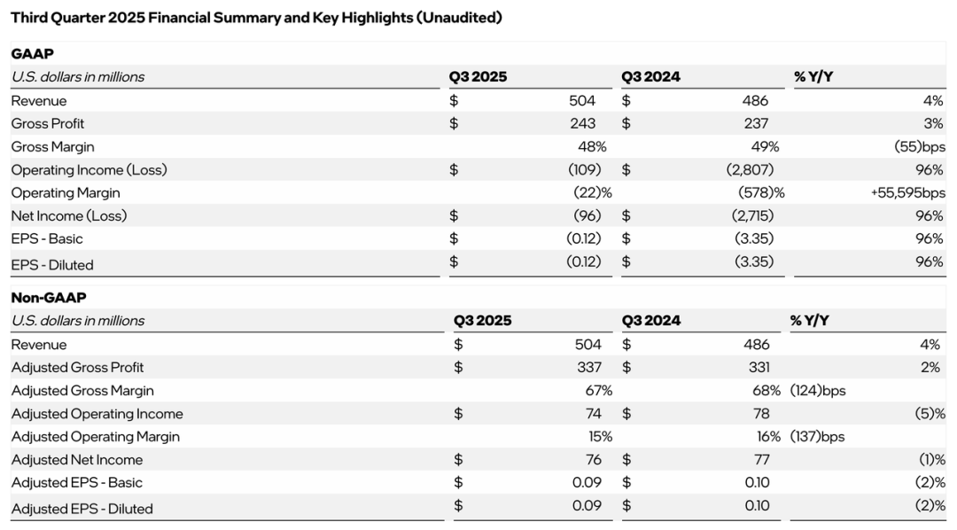 2025 年第三季度,Mobileye实现营收5.04 亿美元,同比增长4%,毛利为2.43 亿美元,毛利率约48%,比去年同期略有下降。