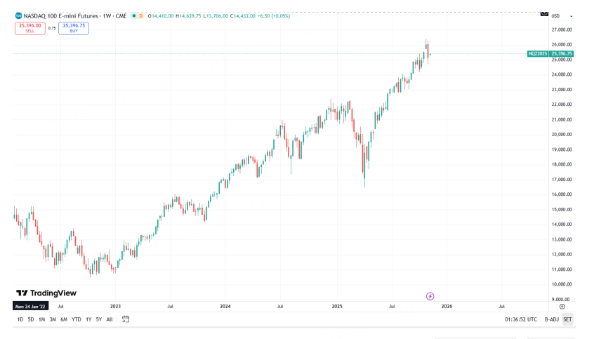 $NQ100指数主连 2512(NQmain)$ $SP500指数主连 2512(ESmain)$ $道琼斯指数主连 2512(YMmain)$ $黄金主连 2512(GCmain)$ $WTI原油主连 2512(CLmain)$
