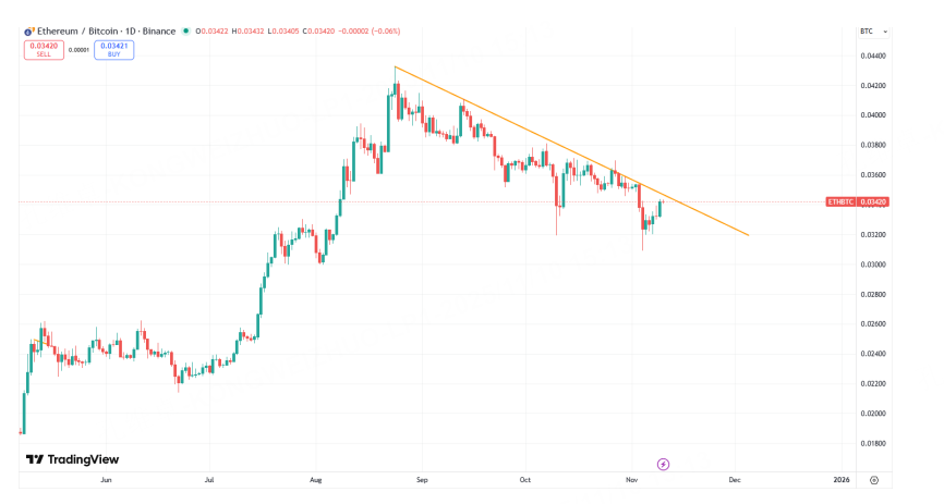 另外一个观察相对强弱的指标ETH/BTC现在正在处于下降通道的阻力附近。理论上来说,下破阻力意味着以太坊会在短时间内强于比特币,而这也是有利于加密市场的整体修正。因为从今年4月份之后,以太坊就更代表情绪,而比特币则相对处于对冲风险的地位。不过如果持续承压或者反弹后在前一个平台停滞的话,中期依然偏向于下行。