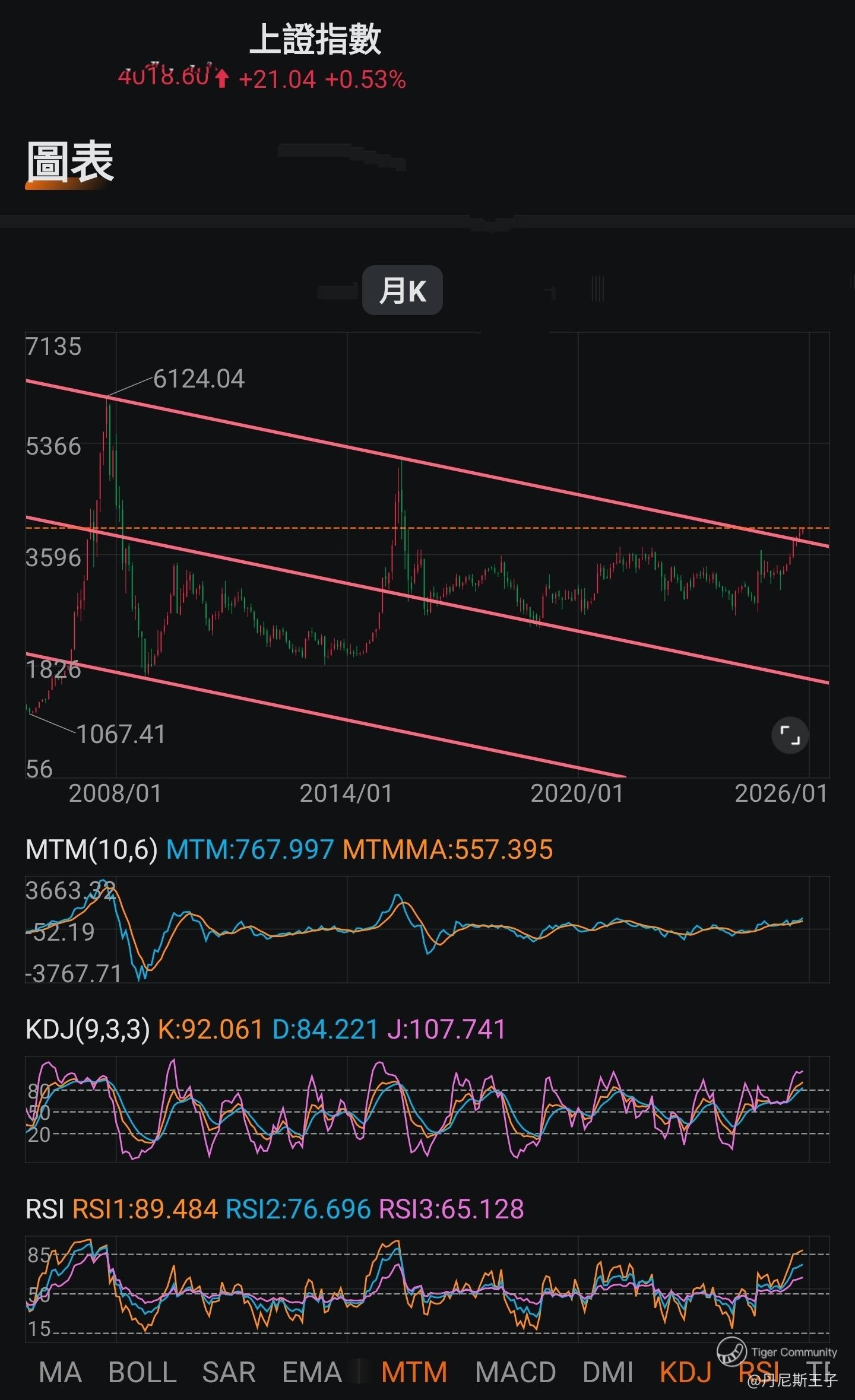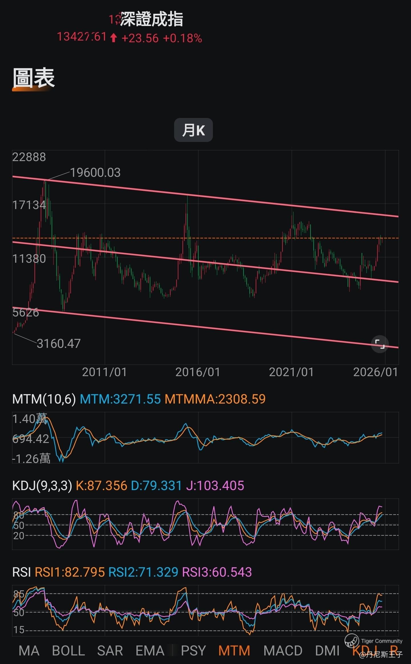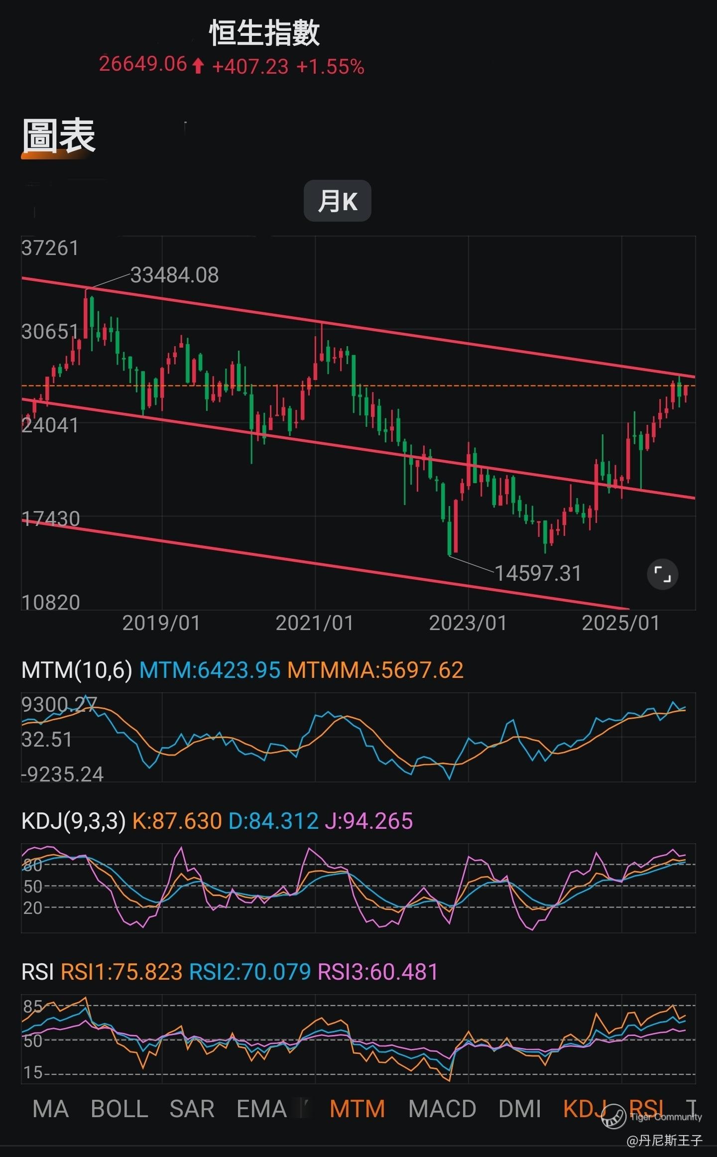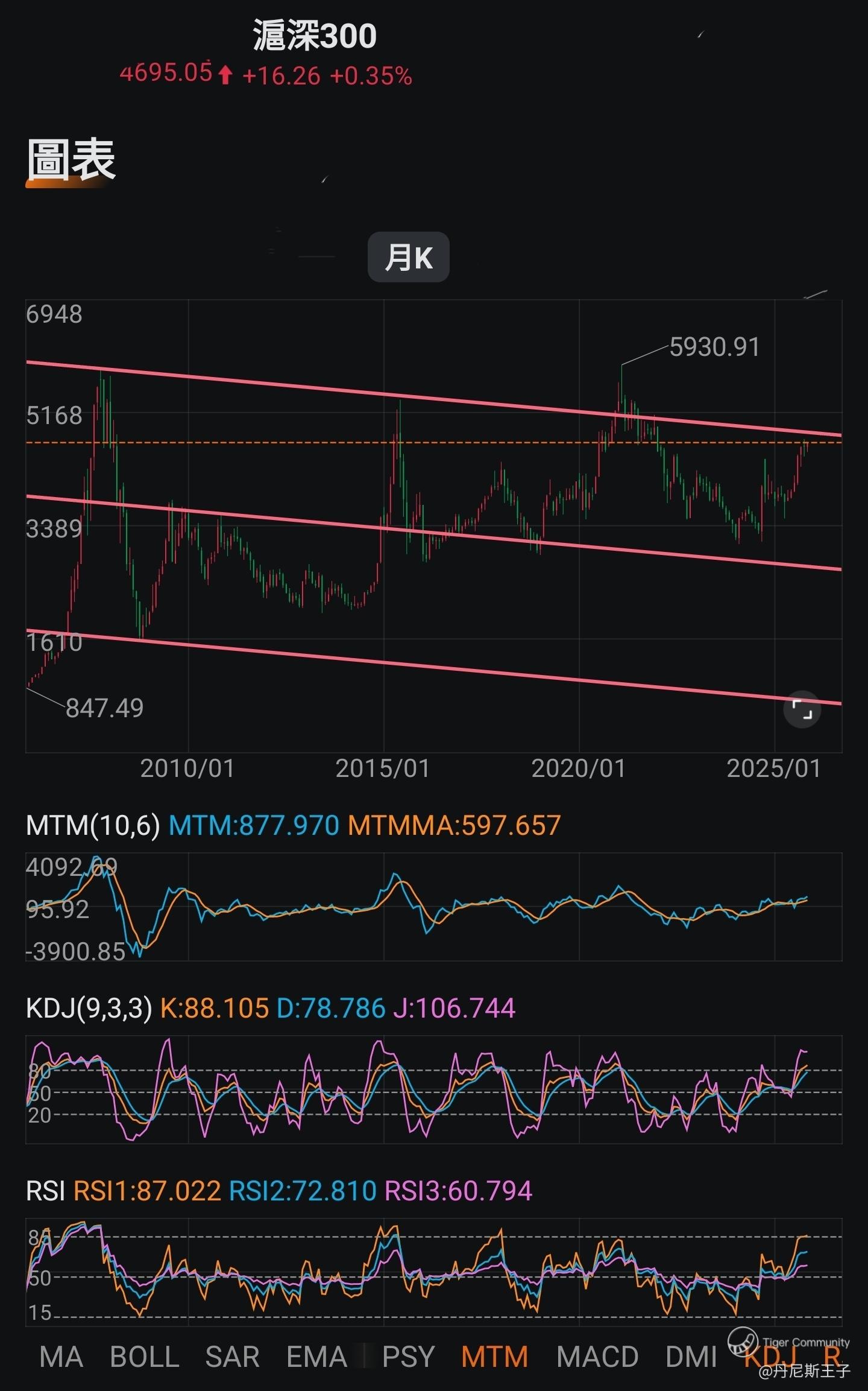 参考:恒生指数/上证指数/沪深300/深证成指 月线图通道线:
