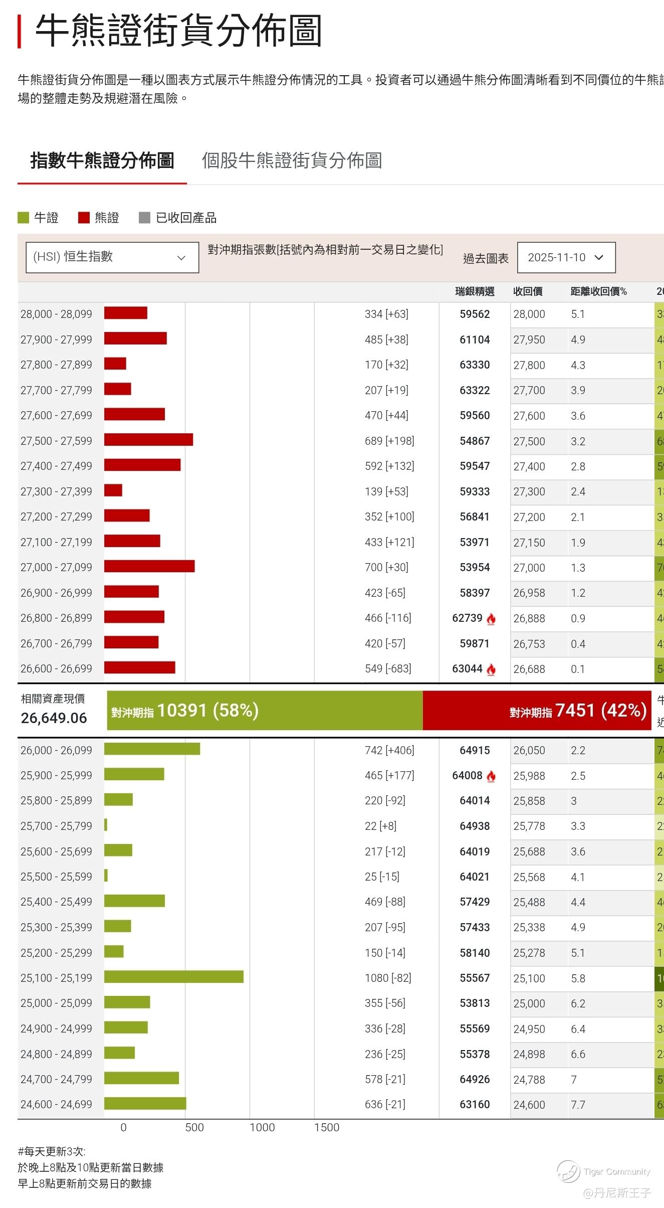 于11月11日至11月12日交易日上市之牛熊证分布图: