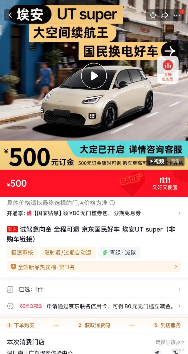 关于白条的问题,主编在京东APP搜索“国民好车”后,有两种选择:支付5000元定金:锁定车型,下单后不可退,定金暂不支持打白条。支付500元意向金:预约试驾,可退。同时支持京东白条分期,享6期免服务费。11月24日起尾款支付开启,尾款支付完成后最快7天门店提车。