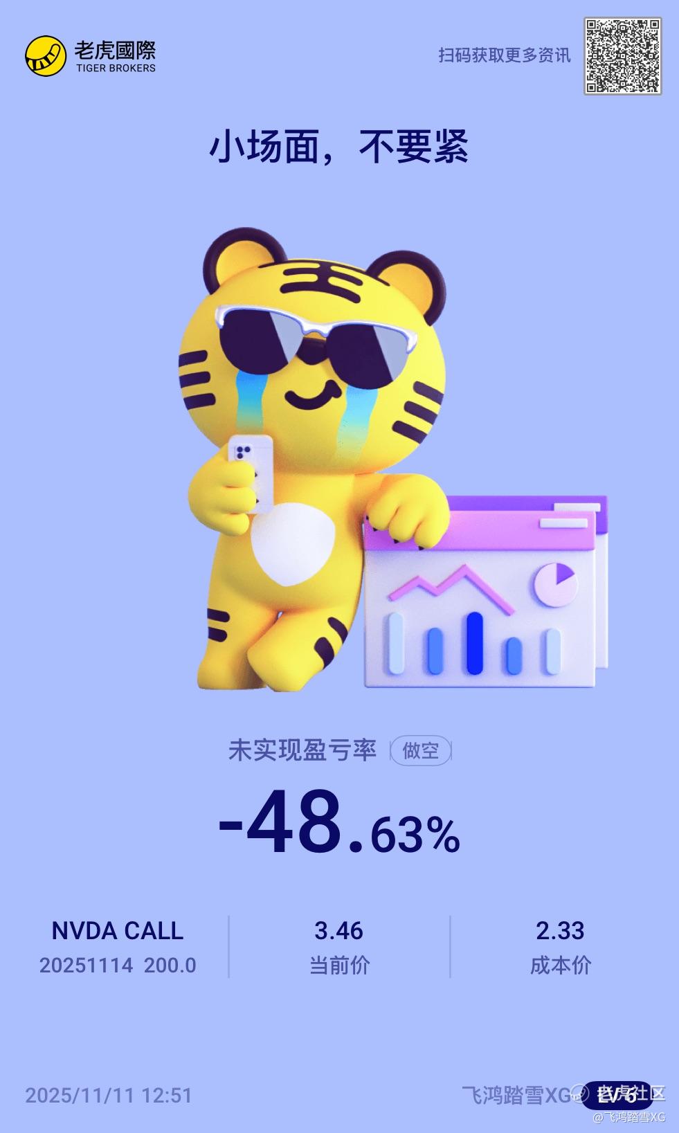 $NVDA 20251114 200.0 CALL$ 英伟达昨天的上涨有点出乎意料,原本以为最多涨个3%,没想到最高冲到了6个点;真就大象起舞;大概率是财报季驱动;但是这次的期权隐含波动率没有上次财报快发布时的高,赌财报的热度也明显没有上次高了;估计是因为股价已经price in了;后面能不能上220可能要看财报的具体表现了;依然长期看好英伟达,因此这张期权可能需要往后roll一下了