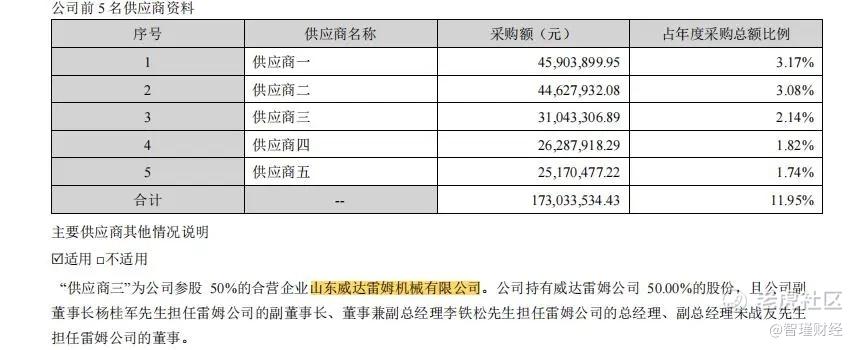 然而,山东威达并未介绍山东威达雷姆机械有限公司在前5大供应商中,说明后者已被“剔除”前5大供应商名单。