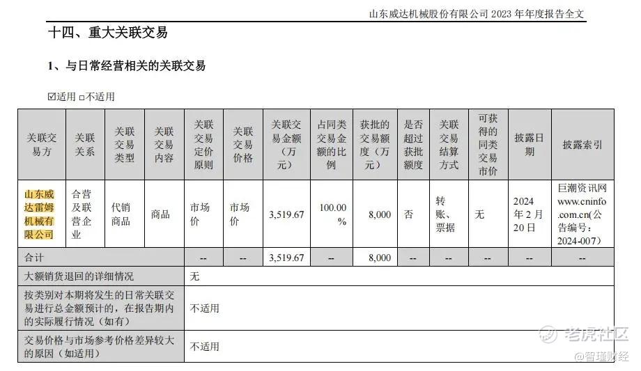 同时,2023年报显示,山东威达与山东威达雷姆机械有限公司关联交易金额达3519.67万元。