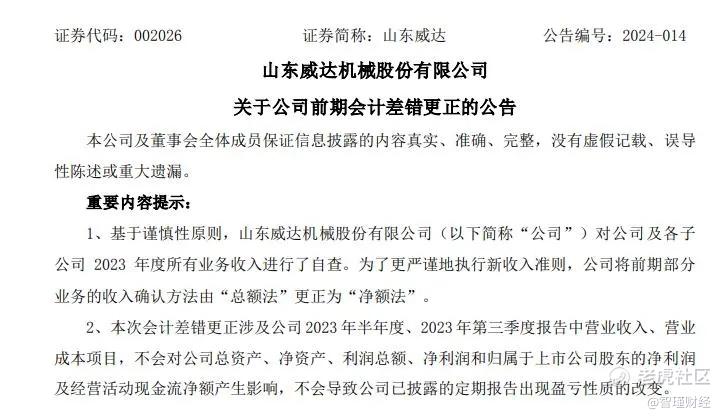 需要注意的是,在发布2023年年度报告前,山东威达对公司的半年报和三季报业绩数据进行了更正。
