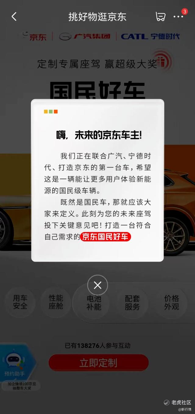 紧接着,京东又在APP上线“互动得京豆、免费抽汽车”活动,用户可定制车辆配置,进一步预热造势。