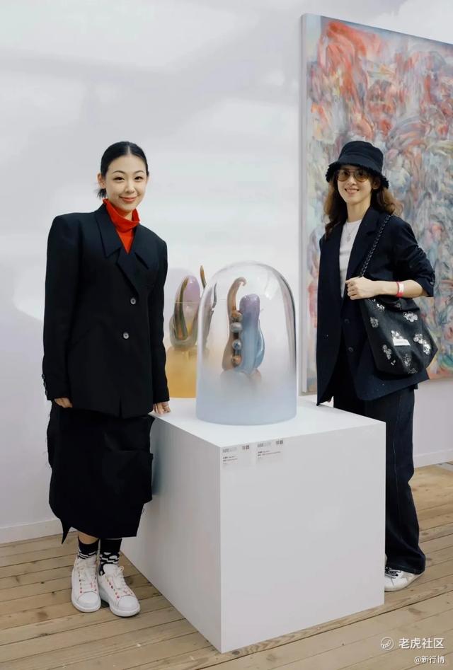 而后,艺术家赵瑾雅晒出了几张巴黎亚洲艺术博览会的现场照片,其中也有章泽天的身影。