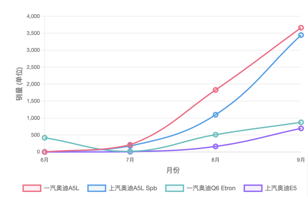 对于奥迪而言,这既是危机,也是转机。奥迪这一次其实推了Q6 E-tron和A5L,油车和智能车,我们可以把销量数据(终端数据,到10月数据出来玩吗可以再继续延伸)拉出来看一看,如下所示。