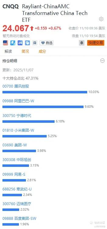 我们从这ETF的重仓股里能看到,现在外资对我们中国资产最青睐的公司是哪些,所以CNQQ ETF的重仓股还是值得当参照物看看的,以往大家可能只记得KWEB,但未来应该会越来越多人也记得CNQQ是代表中国科技资产的ETF。