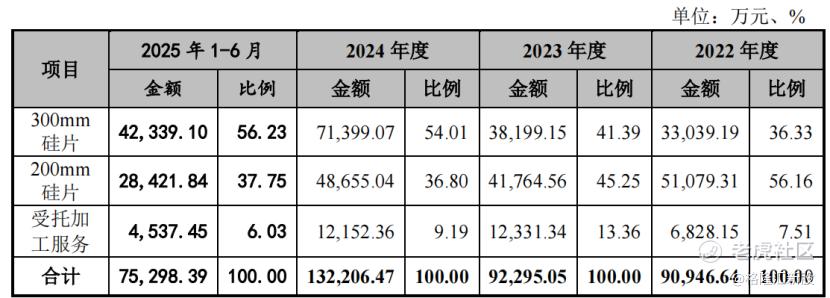 从产品收入结构来看,公司200mm硅片的收入占比由2022年的56.16%下降至2025年1-6月的37.75%,300mm硅片的收入占比则由36.33%提升至56.23%。