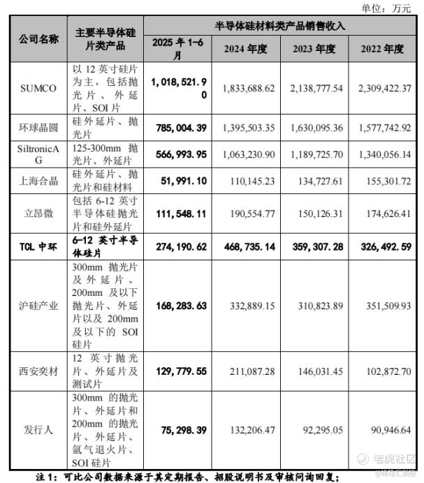 公司在中国大陆地区主要同行业公司为沪硅产业、TCL中环、立昂微、有研硅、上海合晶、西安奕材、中欣晶圆等。