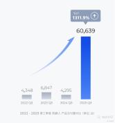 作为机器人空间感知的最佳选择,激光雷达正在迅速迎来第二曲线爆发。机器人领域交付量为 60,639 台,同比大幅度增长 1311.9%,禾赛已成为全球头部机器人企业的首选。