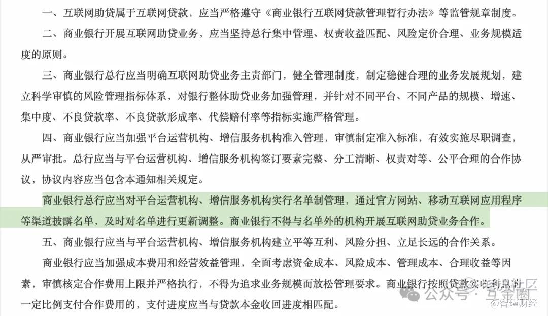 这一动作的背后,是2025年4月《助贷新规》明确要求,商业银行、信托公司及消费金融公司,均需对合作的平台运营机构和增信服务机构实行“名单制管理”,必须在官网或App等渠道公开披露助贷合作名单。