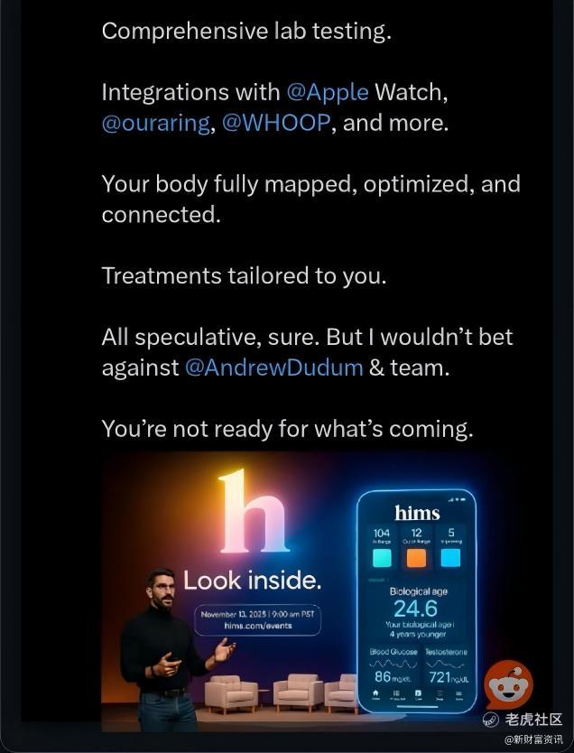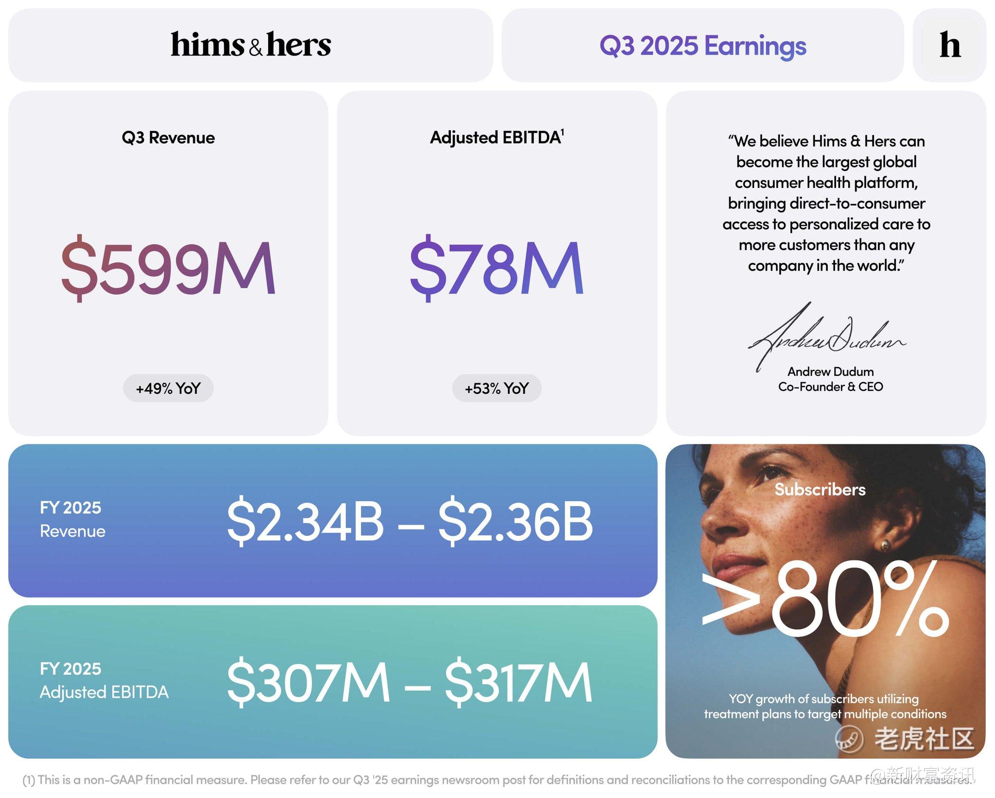 友友们,今天小新要和大家再来聊聊Hims & Hers Health (HIMS)——远程医疗美股。明天,公司全新健康追踪APP即将正式上线,而CEO近期在49美元股价位置启动的股票回购计划,更传递出对企业价值的坚定信心。结合2025年第三季度超预期的财报表现与远程医疗行业的广阔前景,HIMS的长期投资逻辑正不断强化,其成长潜力值得深入剖析。