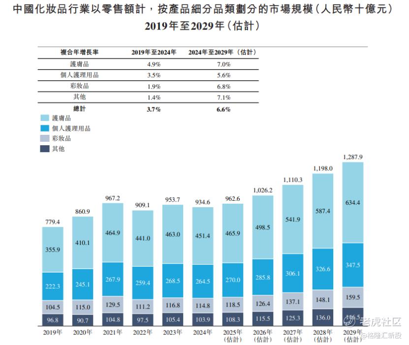 据弗若斯特沙利文的资料,中国化妆品行业较为分散,2024年前五大品牌的市场份额仅8.9%;以2024年零售额计算,珀莱雅以1.3%的市场份额成为中国第四大化妆品品牌,也是前五大化妆品品牌中唯一的本土品牌。