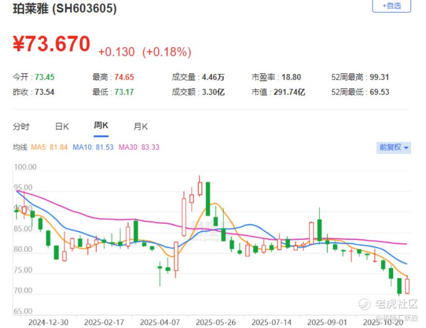 作为消费领域的白马股,近年来,在消费疲软的背景下,珀莱雅的股价呈震荡走势,截至今天收盘,其A股市值约292亿元。