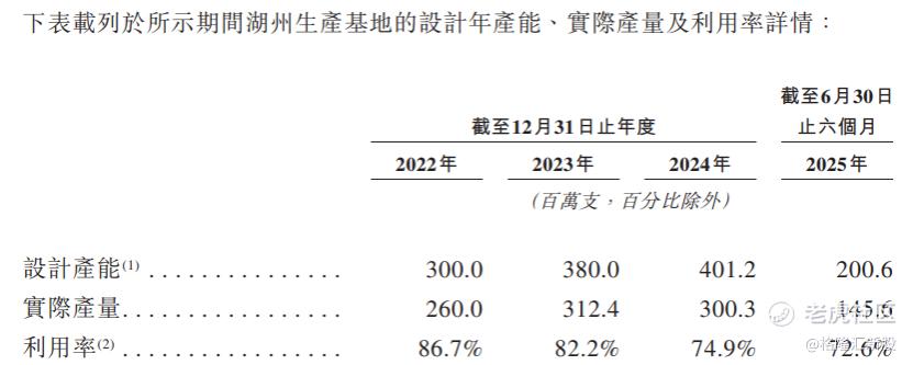 公司在浙江省湖州的生产基地设有66条生产线,主要生产护肤品。但湖州生产基地的产能利用率却呈逐年下滑趋势,从2022年的86.7%降至2025年上半年的72.6%。