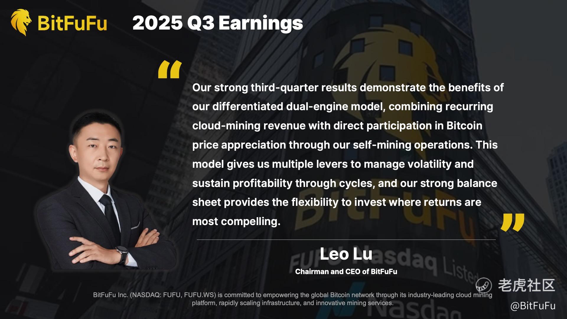 BitFuFu的「双引擎」模式, 结合轻资产、可持续的云算力收入与自营挖矿带来的比特币收益, 在不同市场周期中持续展现出良好的韧性。公司将进一步优化全球算力基础设施,提升资本使用效率,并积极探索节能运算及数位资产基础设施等新兴领域的增长机遇。