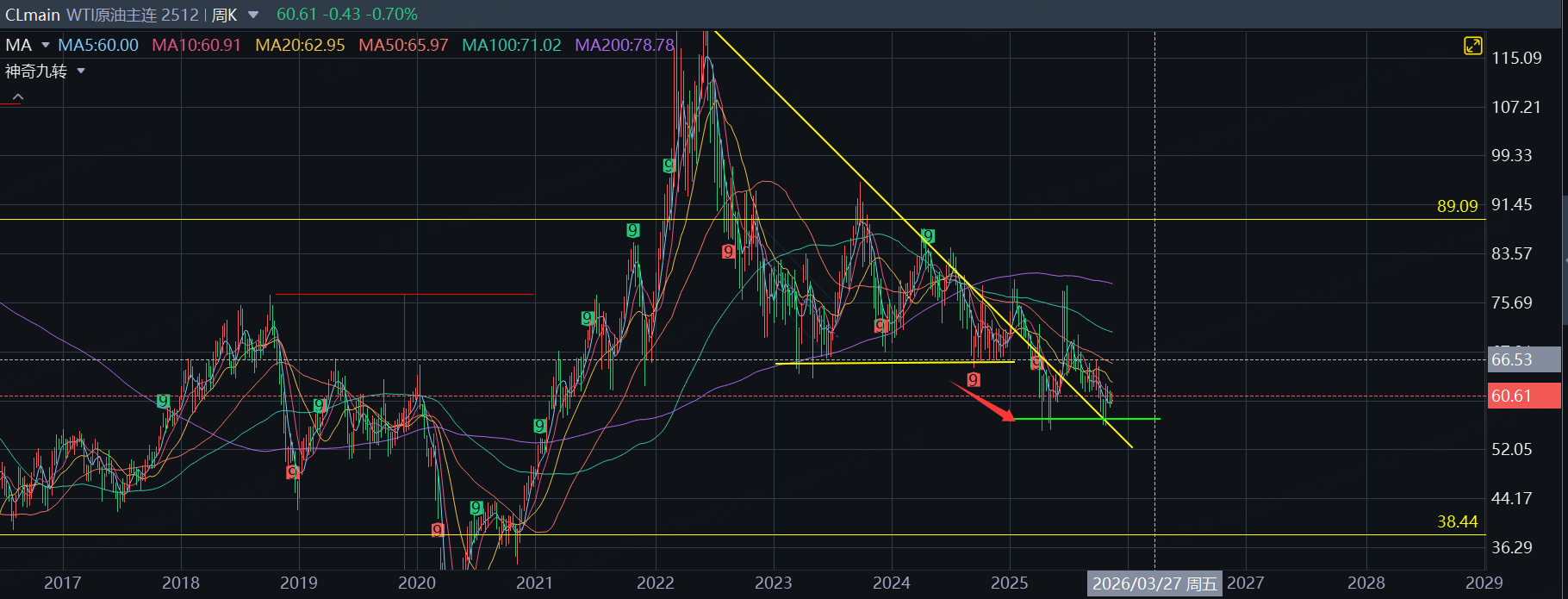 今年以来,原油市场对原油的供应就出现过“巨额过剩”的担忧主导价格表现,成为油价走弱的核心背景。由于对原油供应过剩的担忧,今年油价持续下跌。导致WTI原油价格持续走弱,底部不断下移。