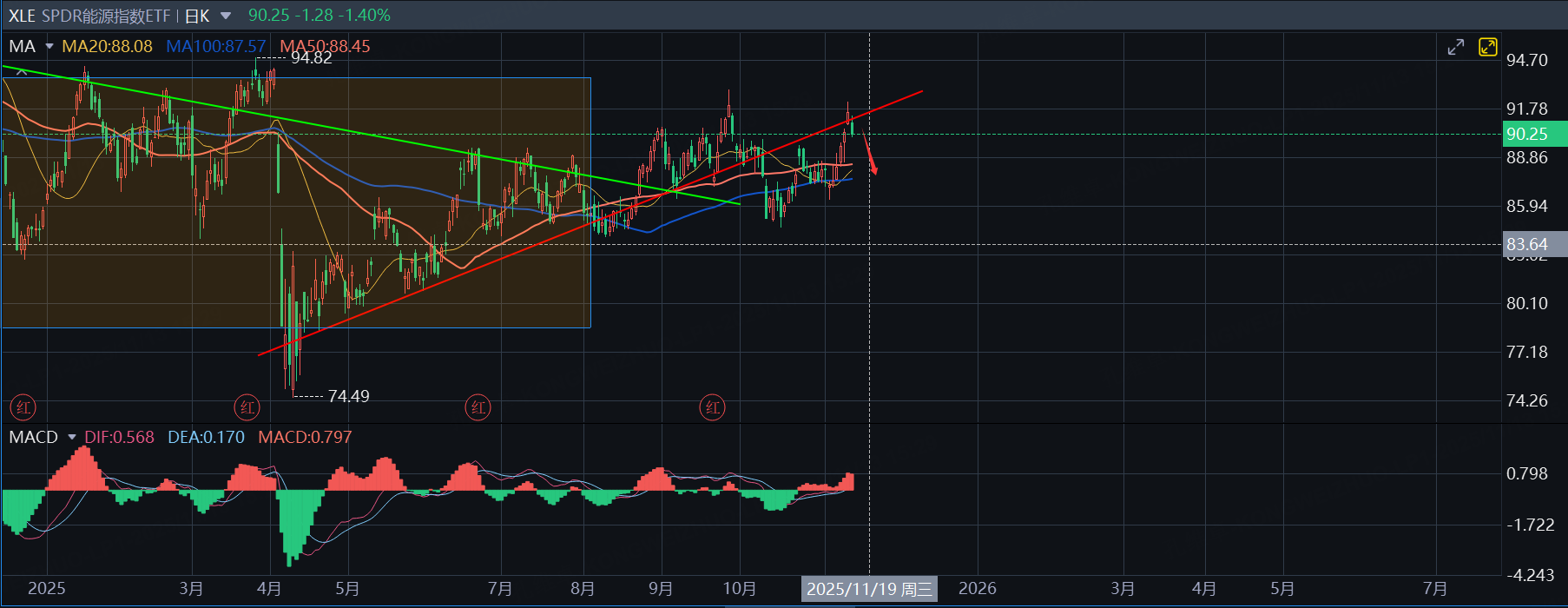 wti原油期货昨晚跌破20日均,短期下行压力加大,考虑在持有文章中卖出xle 的put 的同时,卖出xle做一个covered put 的组合