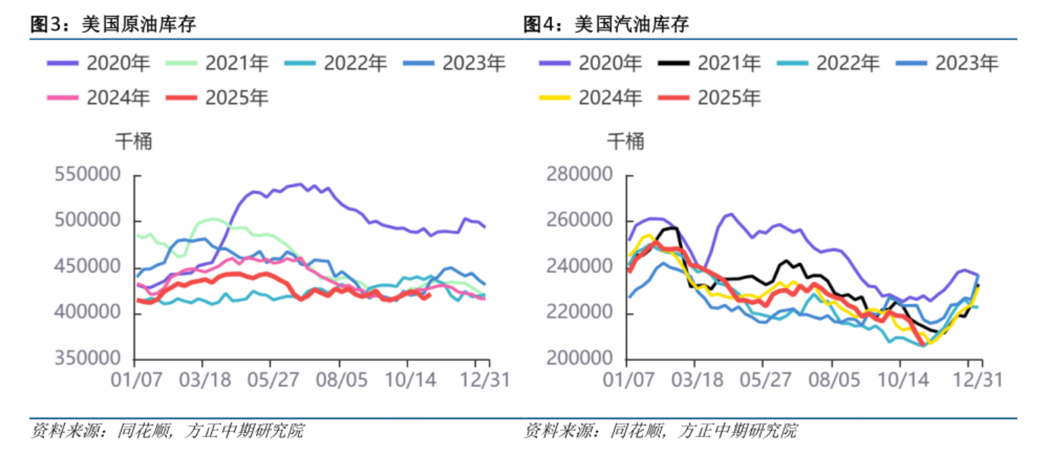 为迫使俄罗斯结束乌克兰战争,特朗普政府对卢克石油(Lukoil PJSC)与俄罗斯石油公司(Rosneft PJSC)实施制裁,已经直接推高柴油价格,并促使欧洲与中东多国政府出手以确保卢克石油庞大业务得以继续运转,政策扰动向下游传导对原油价格形成托底效应。