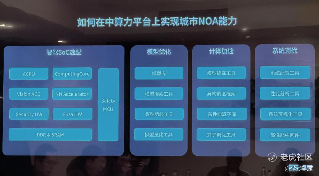前年卓驭推出的基于 7V 感知的中算力方案成行平台也是如此,在当时仅仅依靠 32 TOPS 的算力就能跑通城市记忆 NOA,今年还在这个 32 TOPS 平台上推送端到端城市 NOA ,这对于大部分品牌来说是非常困难的。之前卓驭也在他们的公众号分享过,他们大致是从算法和模型优化、计算加速、系统优化等多个方面着手做的性能优化。