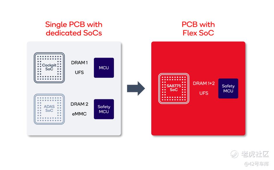 再比如,智能座舱本身就有一些功能需要和智能驾驶域相结合。比如车外摄像头的调用,泊车辅助相关的功能,原来需要两个域之间通过千兆以太网来通信,现在两个都域在一块 SoC 上,那系统延迟就会有非常大幅的降低了。