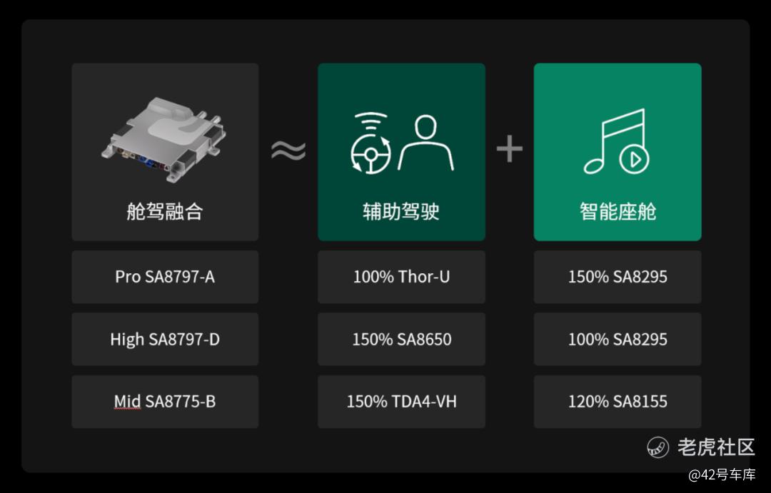 通过这张图,打消了我前面的很多关于算力的疑虑。也说明舱驾一体方案其实并不单纯只有成本优势,不会只限于低端车型才会搭载,在旗舰车型上同样也具有竞争力,毕竟也没有人规定一颗芯片一定打不过两颗芯片。