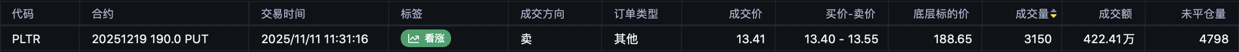甚至排名第一的是sell put看多: $PLTR 20251219 190.0 PUT$