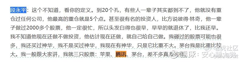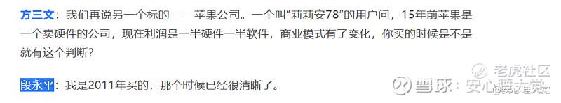 段永平在苹果公司的绝对仓位,已经预见性认知就能说明问题。2011年就知道未来收入一半硬件一半软件。公司会做什么,不做什么也非常熟悉。大家可以翻翻关于苹果公司的判断就知道了。在此不赘述。