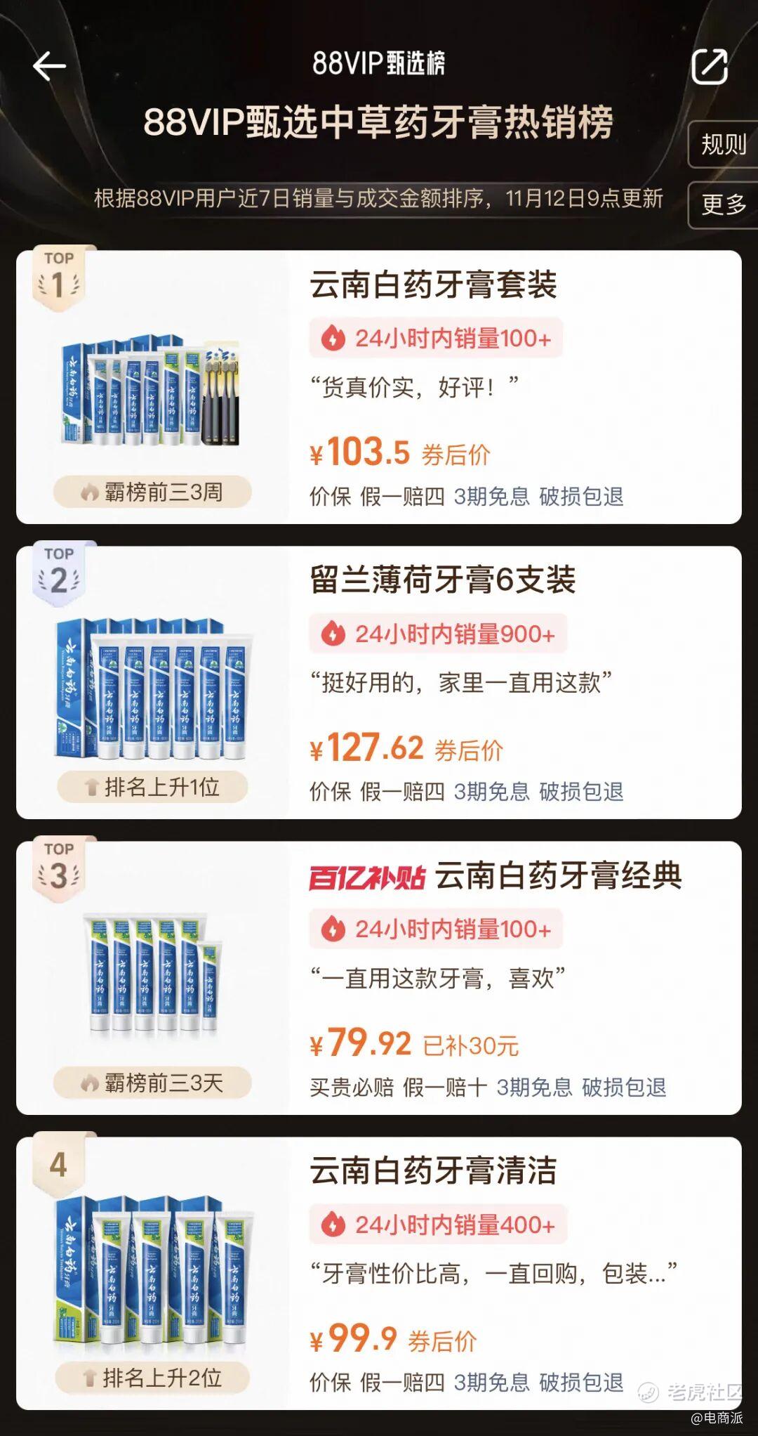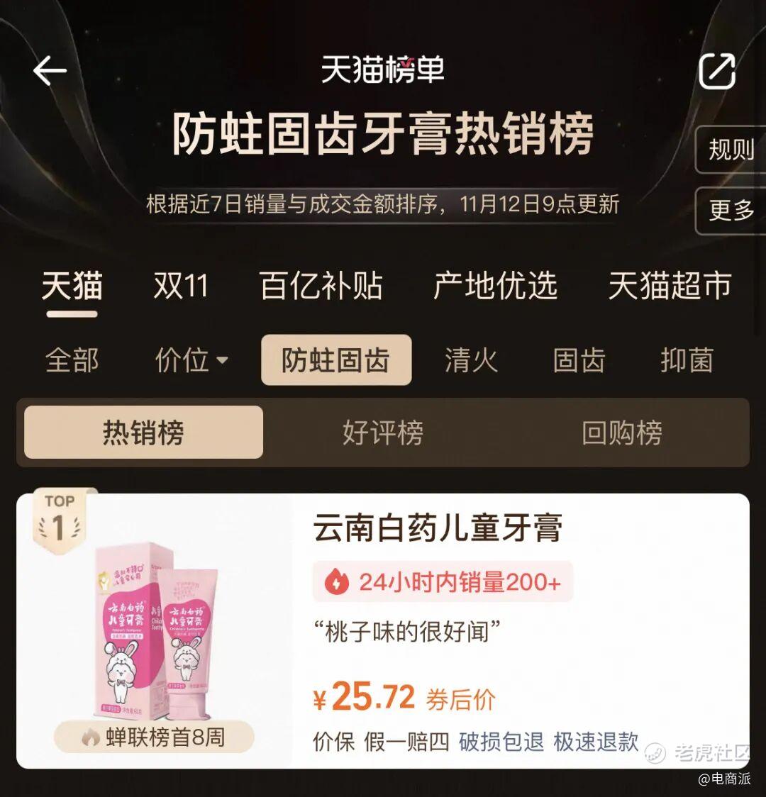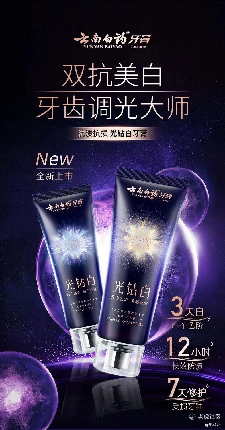《电商派Pro》注意到,这段时间,云南白药聚焦消费者对美白、多功效的口腔护理需求,上新光钻白牙膏。“先修护,再祛渍,还能12h防渍”的美白护理全链路,将美白需求细分,做到更全能的产品配方、更年轻亮眼的包装设计、更可视化的功效表达,受到大学生等年轻人群喜爱,吸粉能力很强。
