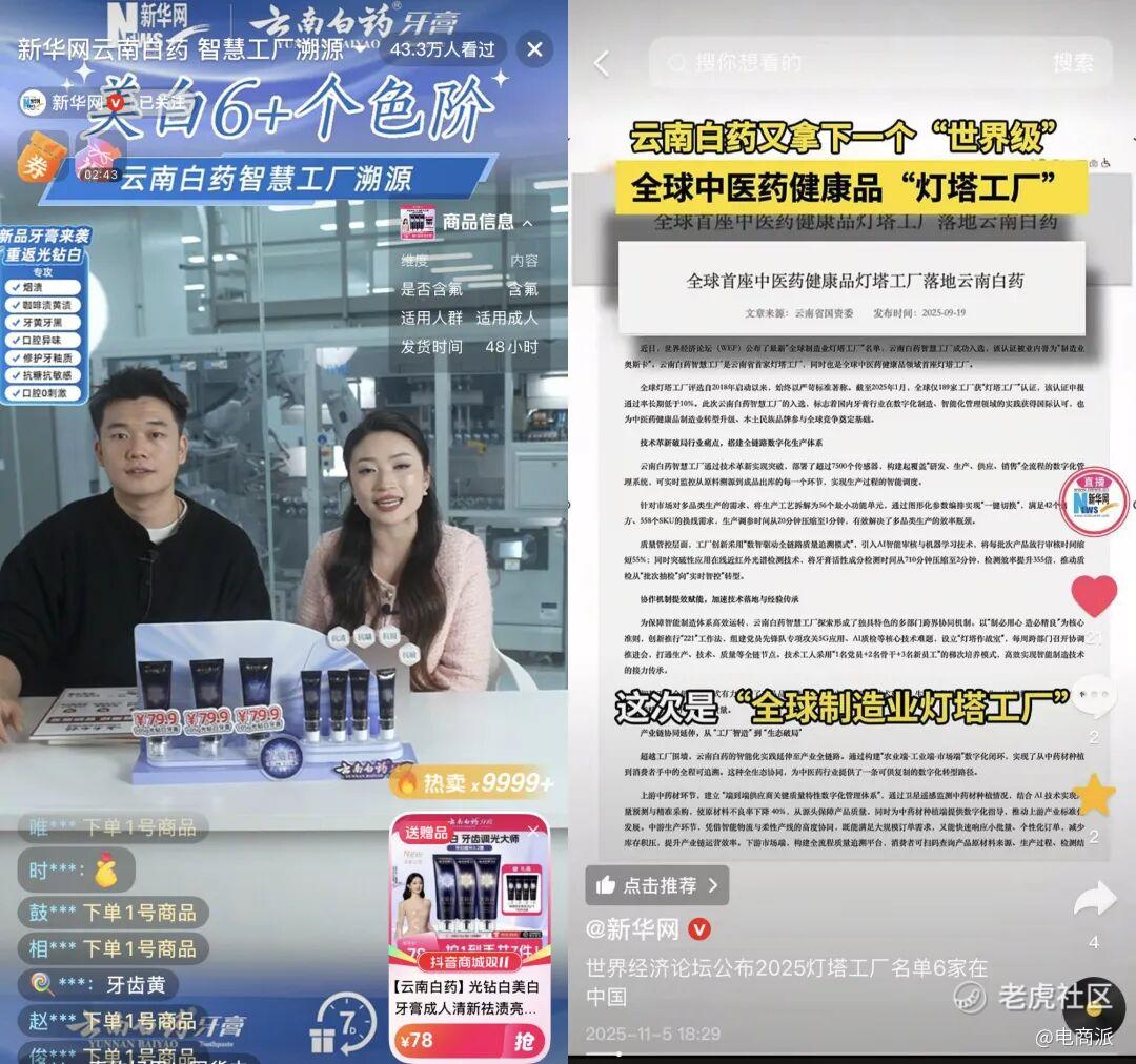 《新华网》抖音直播间就以溯源为主题来到该工厂沉浸式直播,为消费者打造生动化的场景演绎内容。画面中,高度自动化的生产线如精密交响乐团般运转,中国品牌生产出“世界级”灯塔品质。这种"所见即所得"的透明化生产场景,直观传递中国品牌从"制造"到"智造"的跨越式发展,增强用户信心,驱动信任复利。