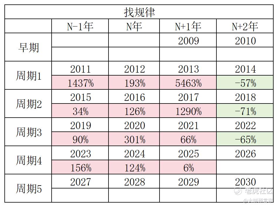 关于这个说法,我们先不讨论对错,来玩一个最简单的游戏,找规律。根据以下这个规律,预测2026年是涨还是跌。