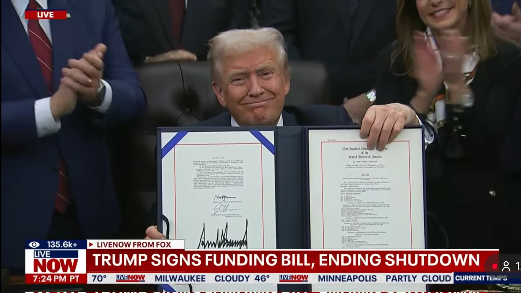 当地时间11月12日,特朗普在白宫签署了临时拨款法案,美国政府重新开放,史上最长的43天停摆结束了。[看涨][看涨][看涨]