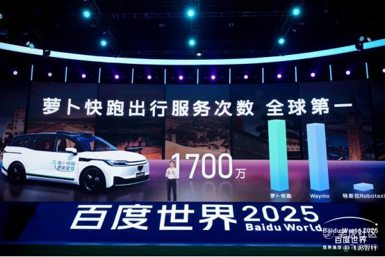 “萝卜快跑每周的全无人订单数已经超过了25万,全球的出行服务次数超过了1700万次,成为全球第一。”
