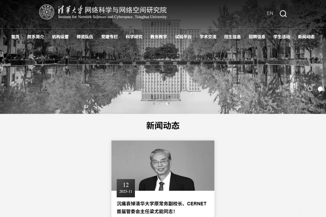 目前,清华大学网络科学与网络空间研究院官网已变为黑白。